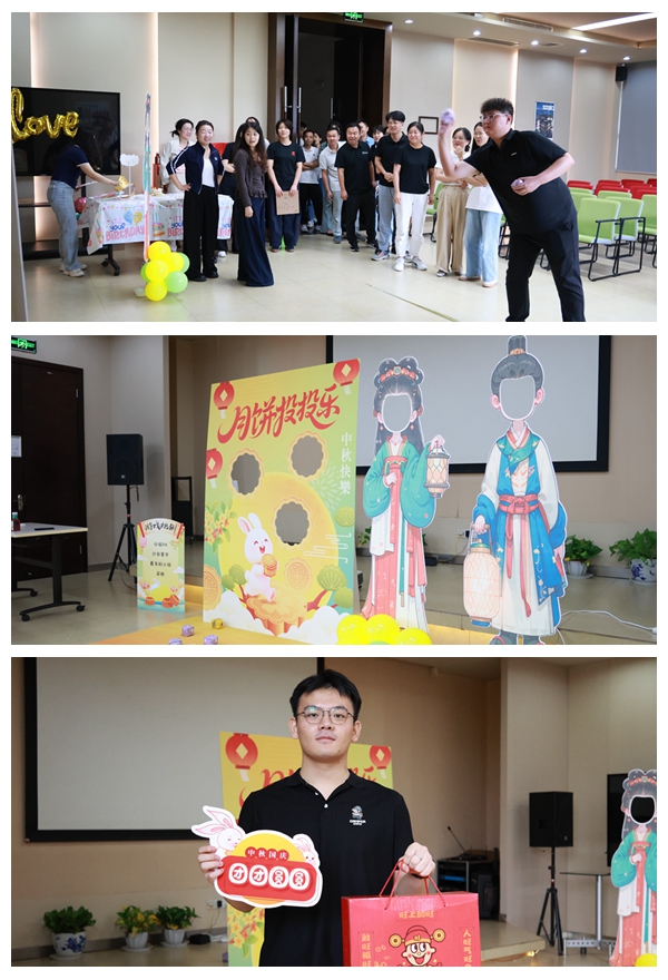 紧接着,中秋游戏环节将欢乐延续。“月饼投投乐”游戏区域渐渐排起了长龙,同事们摩拳擦掌,瞄准、投掷,每当有沙包精准投入,便引来一阵阵欢呼喝彩。智能电子秤、精装版四大名著、旺旺大礼包等丰厚奖品也纷纷被小伙伴们收入囊中。活动现场还设置了精美的中秋主题拍照框,大家争相打卡,记录下这团圆欢乐的瞬间。